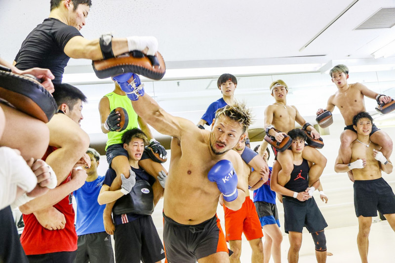 2mの仮想カリミアンにミットを打ち込む愛鷹(c)K-1