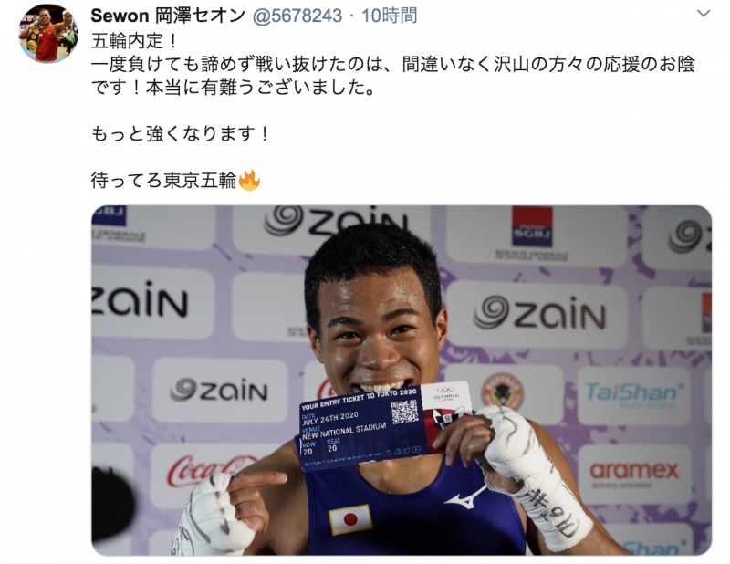 東京五輪の切符を手にした岡澤(岡澤のツイッター @5678243より)