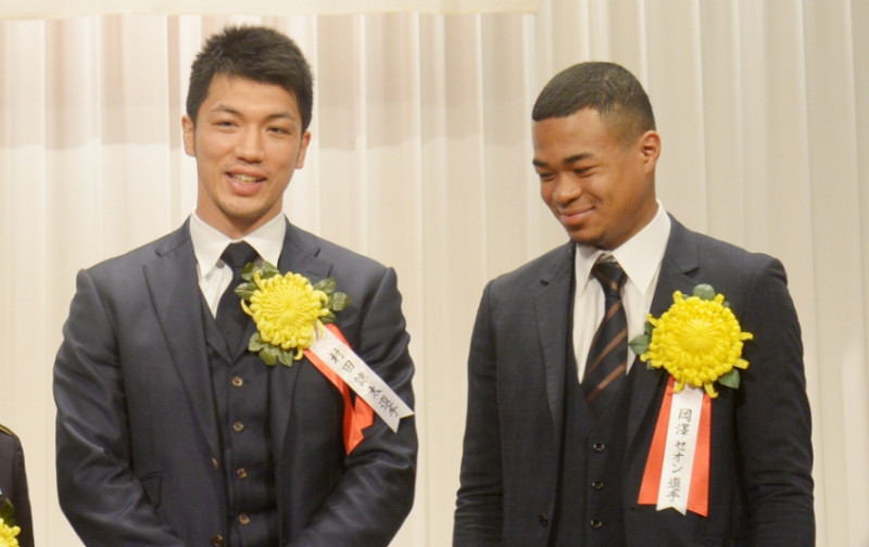 今年の年間表彰式で五輪の先輩の村田諒太と共に