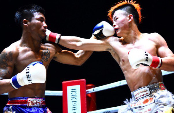 大苦戦を強いられた2018年6月の現ONE王者・ロッタンとの一戦でパンチを打ち込む那須川