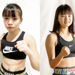 女子大生になる山上(左)が女子高生ファイター・木幡(右)と対戦
