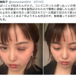 暴行を受けた山崎の額の出血と目の怪我の写真(@momochan0910より)