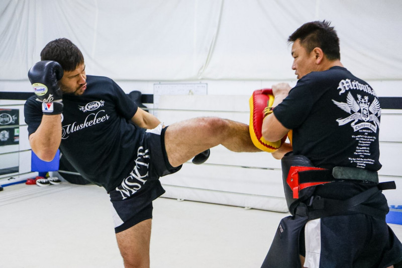 左ミドルを蹴り込む加藤 (C)M-1 Sports Media