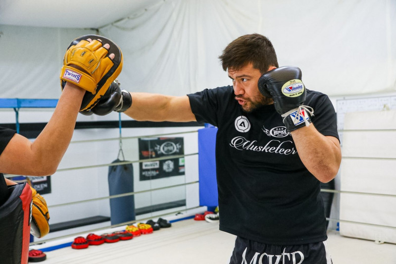 豪快なフックを叩き込む加藤 (C)M-1 Sports Media
