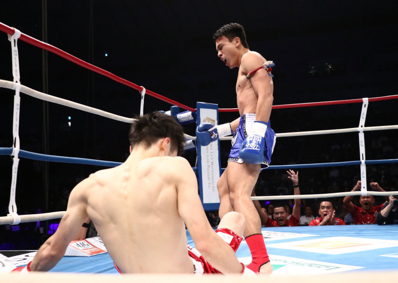 得意の飛びヒザからの左フックで安保璃紅を葬ったジャオスアヤイ