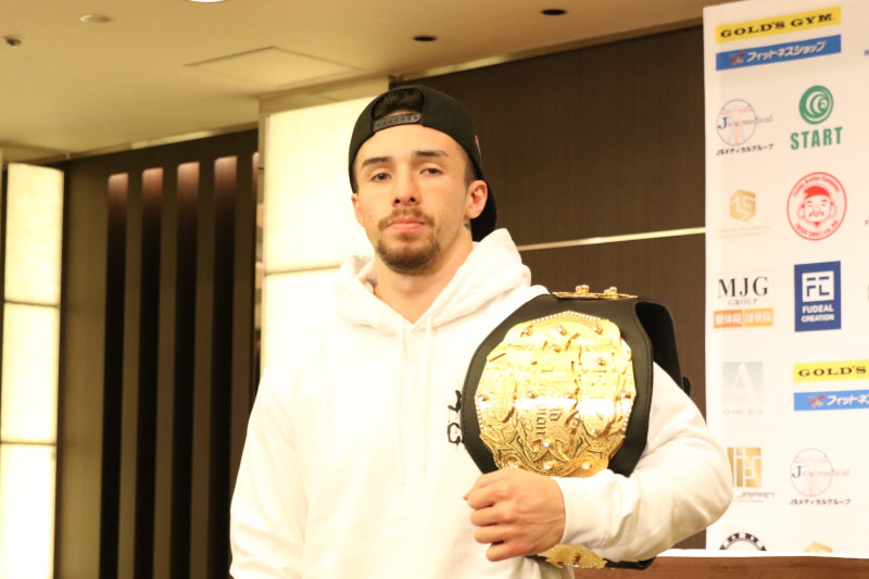 会見場に姿を現した木村の左肩には金色のK-1王者のベルト