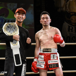 3月大会でYABUを5度倒した内田(右)の右ストレート