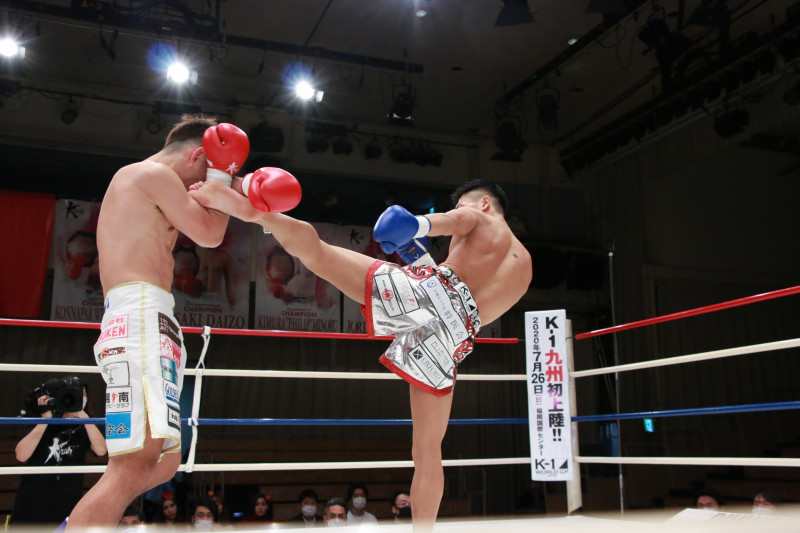 長い蹴りを出していく斗麗(右)