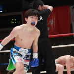 19年5月、皇治(右)率いる「皇治軍団」の一員として格闘代理戦争に出場した松本(左)