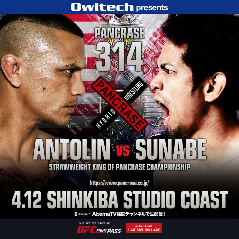 中止となった4.12大会のアントリンvs砂辺光久の睨み合う迫力のキービジュアル