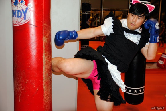 猫耳メイドコスプレで異彩を放つ主催者の佐藤光留(2015年撮影)