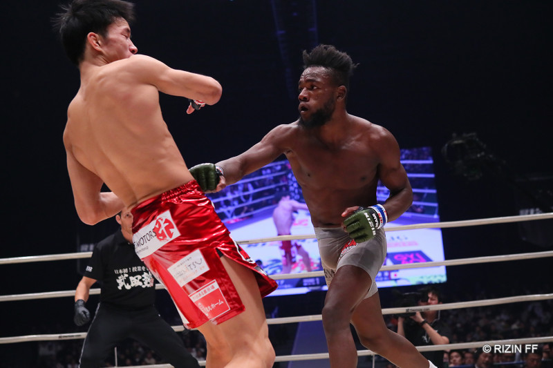 朝倉海をパンチで攻め立てるケイプ