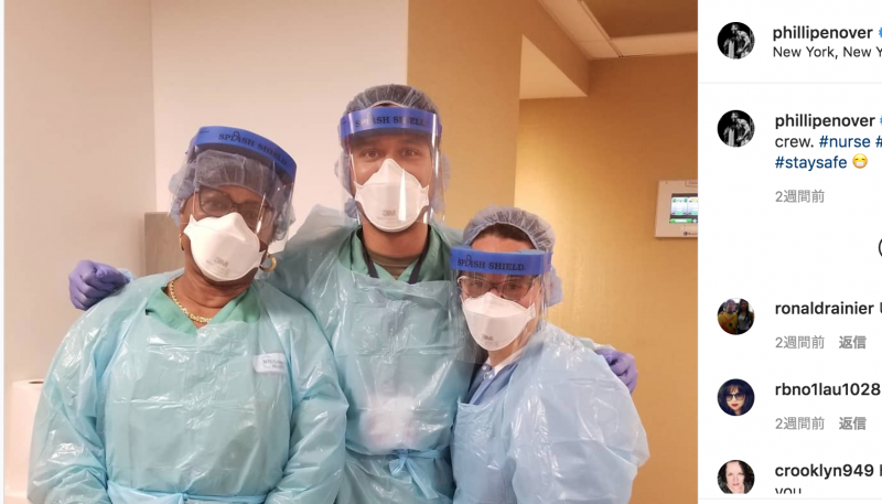 医療防護服を身にまとう同僚とノヴァー(中央)@phillipenoverより