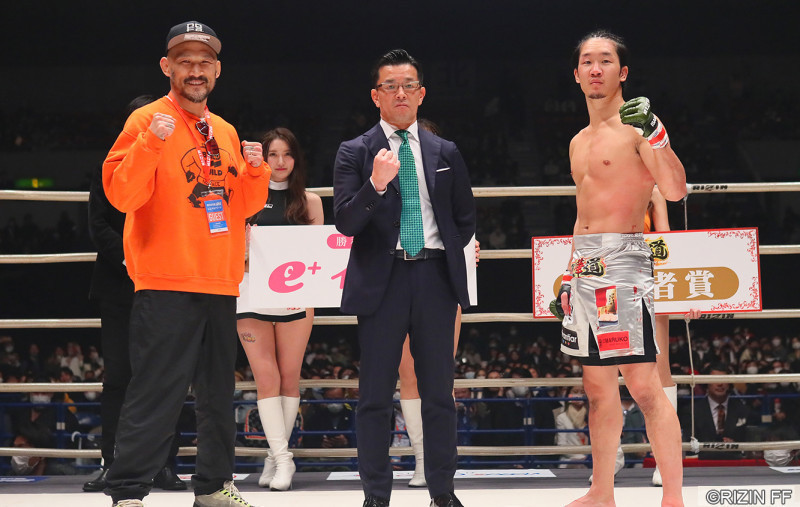 4月の横浜アリーナ大会で対戦予定の朝倉未来と朴光哲がリングで並ぶ