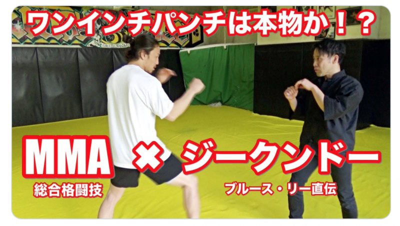 ジークンドーの石井先生と向かい合う矢地(矢地祐介ツイッターより)
