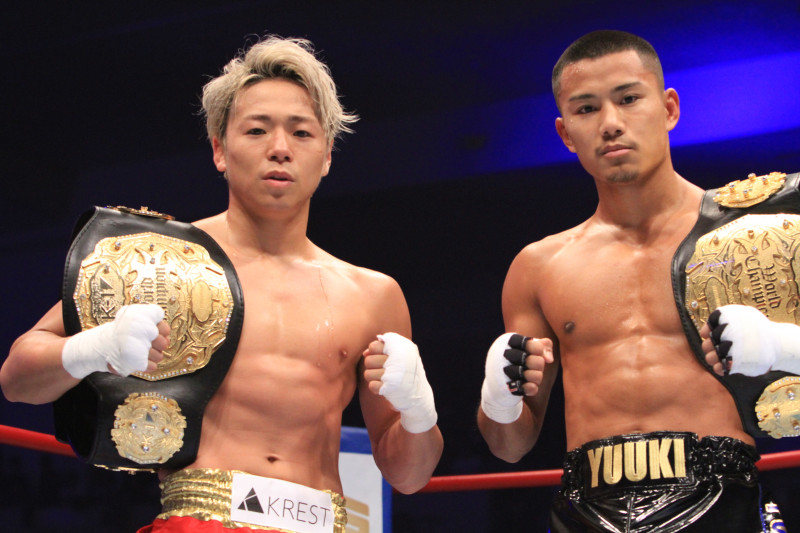 K-1とKrushの王座を獲得している武尊(左)と江川優生