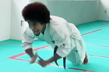 「ウォー」と苦しみながらも掛け声をかけジャンピングの腕立て伏せを見せるベイノア