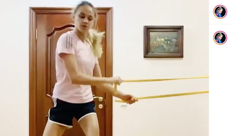 チューブトレーニングをするビロディド(@dariabilodid7より)