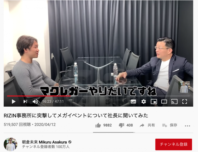 対談でマクレガー戦を要求する朝倉(YouTube朝倉未来チャンネルより)