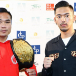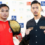 18年2月、ゴンナパー(左)からダウンを奪って秒殺KO勝利を収めた篠原