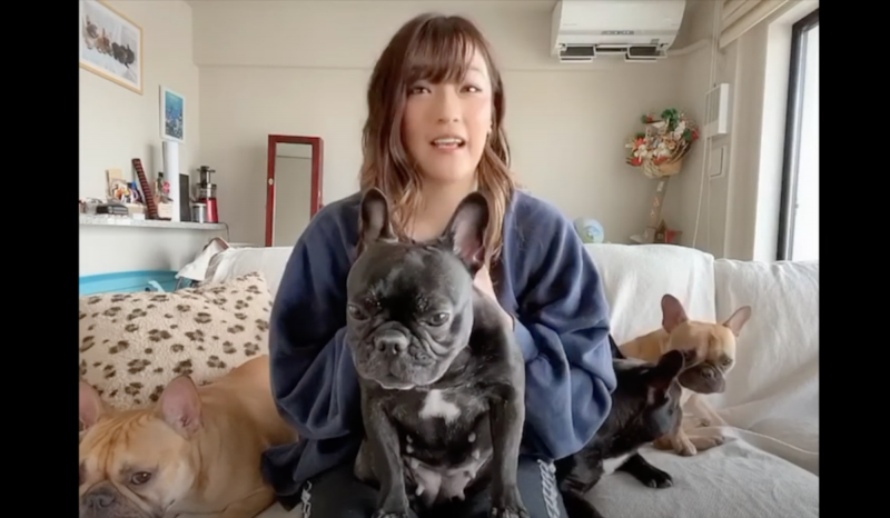 RENAがRIZINデビューの直前に出会った1匹の愛犬から今では4匹になった経緯を語った(シュートボクシングYouTubeチャンネルより)