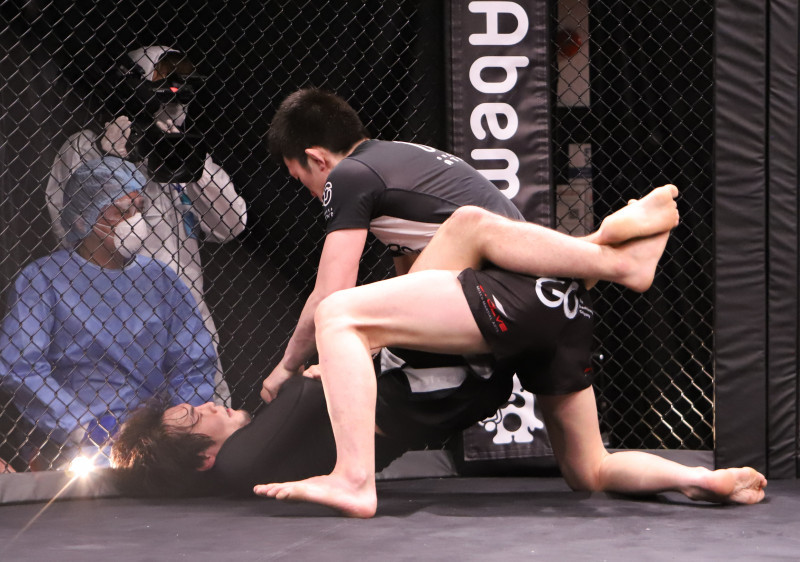 ケージ際に持っていき、世羅の動きを制限した青木(C)Road to ONE Executive Committee