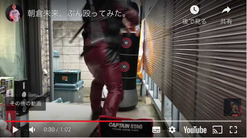 平本がサンドバッグに貼り付けた朝倉未来をなぐりかかる(平本蓮YouTube)