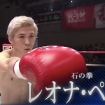 レオナのこの強烈な右フックでダウンを奪った
