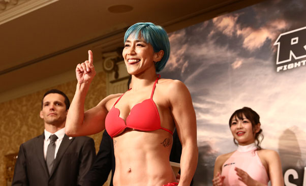 ビキニで計量をクリアーした山本=昨年大晦日の計量