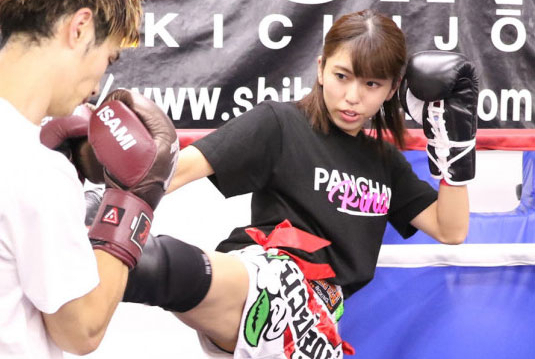 公開練習でリズム良くミドルキックを蹴り込むぱんちゃん(19年9月)