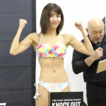 フィジカルトレーニングを終え、鍛えた腹筋と力こぶを見せる、ぱんちゃん璃奈( @panchanrinaより)