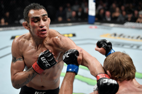 強烈な左の拳を振るうファーガソン(左)(c)GettyImages