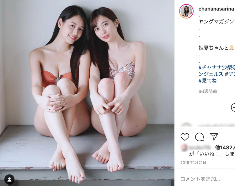 昨年1月、ヤングマガジンのグラビアを飾ったチャナナ沙梨奈(左/@chananasarinaより)