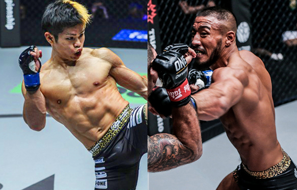 筋肉ファイターの代表的存在である元SB世界王者の鈴木(左)とパンクラス王者の手塚(右)が対談で筋肉バトルを繰り広げた