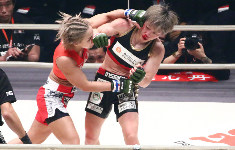 浜崎(右)が1R、ソヒに打撃で優勢に進める