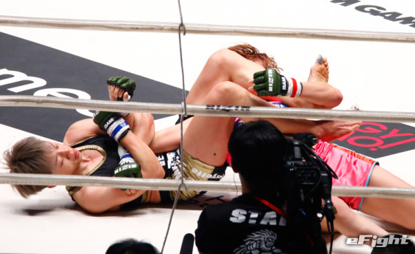 腕十字を極める浜崎(左)対浅倉カンナ戦