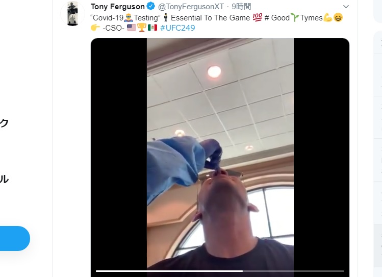 検査のため鼻の穴深くまで綿棒を突っ込まれるUFC249メインのファーガソン