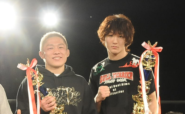 2010年12月、新人王となった堀口恭司(左)と佐々木憂流迦