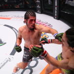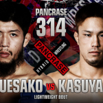 流血しながら矢地と打撃戦を繰り広げる上迫(19年12月)