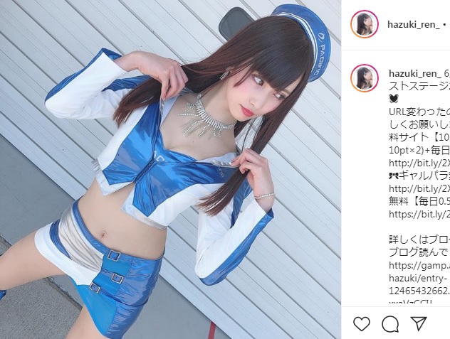 レースクイーンのコスチュームを着た葉月蓮(@hazuki_ren_より)