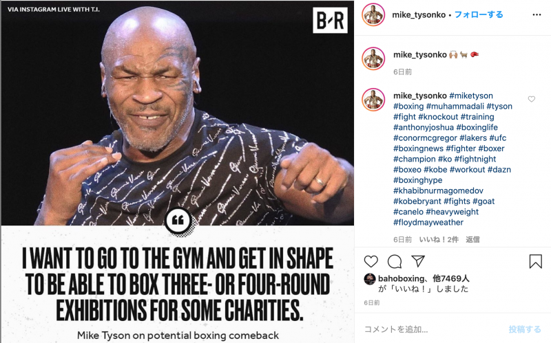 タイソンのSNSにマクレガーやメイウエザー ら、多くの強豪が並ぶ(@mike_tysonkoより)