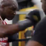 ミットにキレのあるフックを打ち込むホリフィールド@holyfield
