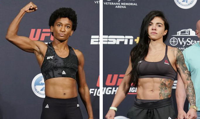 割れた腹筋でパスしたガデーリャ(右)と”殺戮のストライカー”ヒル(Getty/Zuffa LLC/UFC)