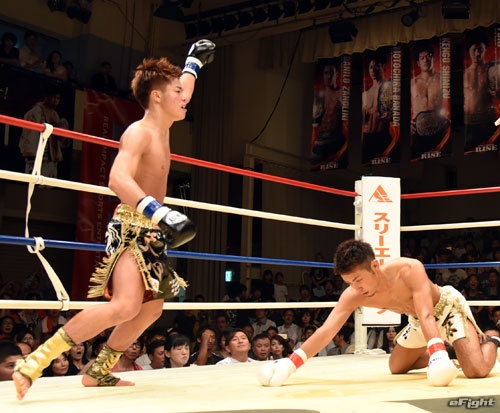 王者、村越をKOで破り、新王者となった那須川
