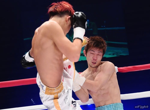 那須川デビュー戦でハイキックが相手のテンプルに決まった瞬間