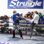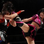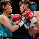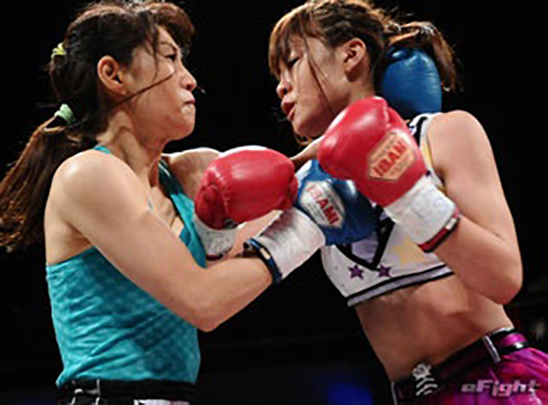 ありさ(右)はシュートボクシングデビュー戦でパンチの連打で3度のダウン奪いKO勝利=14年