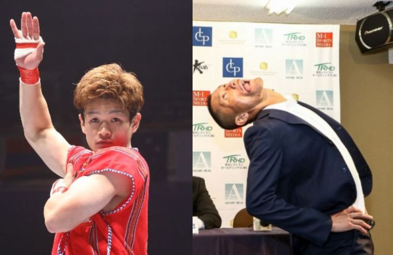 ラウェイ王者・金子(左)とお騒がせ男の堀井(右)が対決(C)M-1 Sports Media