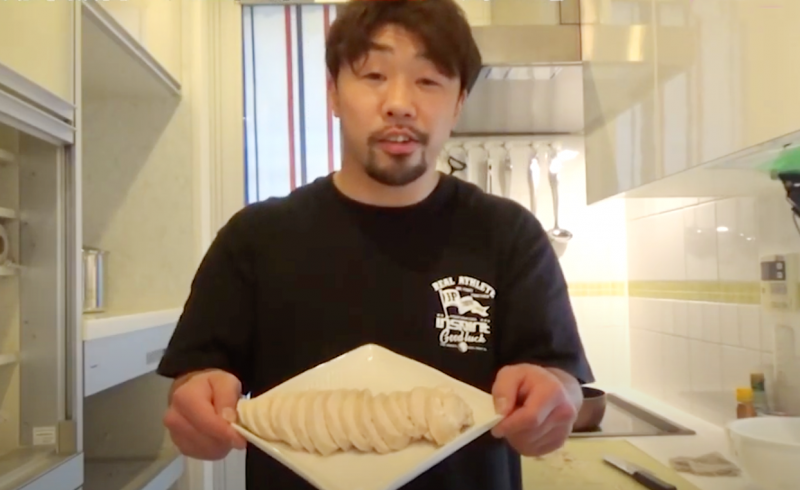 八重樫が激痩せレシピとして鶏ハムの作り方を伝授、簡単なのでやってみよう。(八重樫東のやえちゃんねる より)