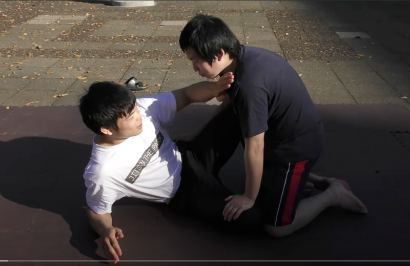 公園で練習する岩本(左)Let's BJJより=19年秋