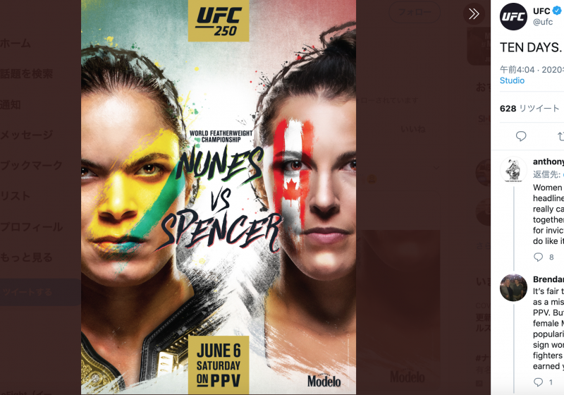 6月6日のUFC250では女子世界王者のアマンダ・ヌネス(左)が防衛戦を行う(UFC Twitterより)